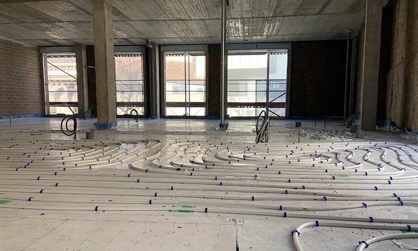 Hem finalitzat les cobertes de l’edifici i els tancaments de la façana. A l’interior s’està treballant en la construcció d’envans i en les instal.lacions.