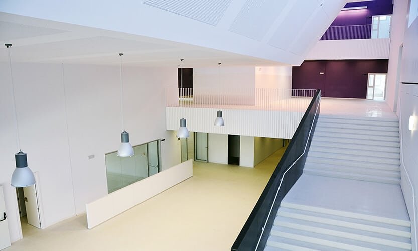 Construcción de una escuela de 3 líneas, con una superficie de 5.800 m², rehabilitando uno de los edificios de la antigua fábrica AEG de Terrassa. Este proyecto se ha gestionado con la modalidad de Proyecto y Obra. En el interior de la fábrica rehabilitada se han ubicado el gimnasio, la cocina y todas las aulas correspondientes a primaria. Obra proyectada por Pascual-Ausió arquitectes.