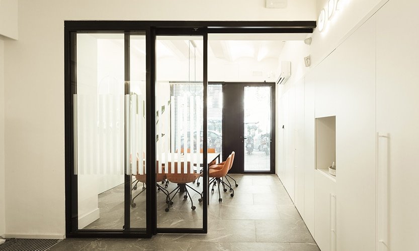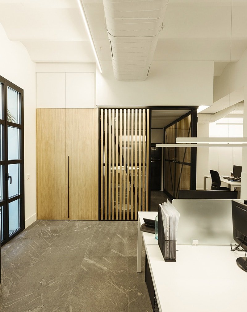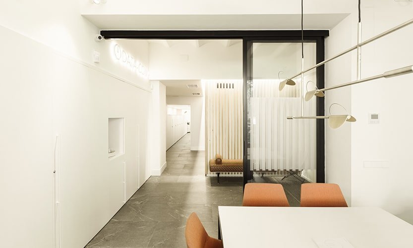 Proyecto de reforma integral del interior de un local, ubicado en la calle Compte Borrell de Barcelona. La empresa Data-Comp, que se dedica al asesoramiento integral a empresas, se instala en estas oficinas como sede social para desarrollar su actividad profesional. Obra proyectada por el despacho MMMU Arquitectes.
