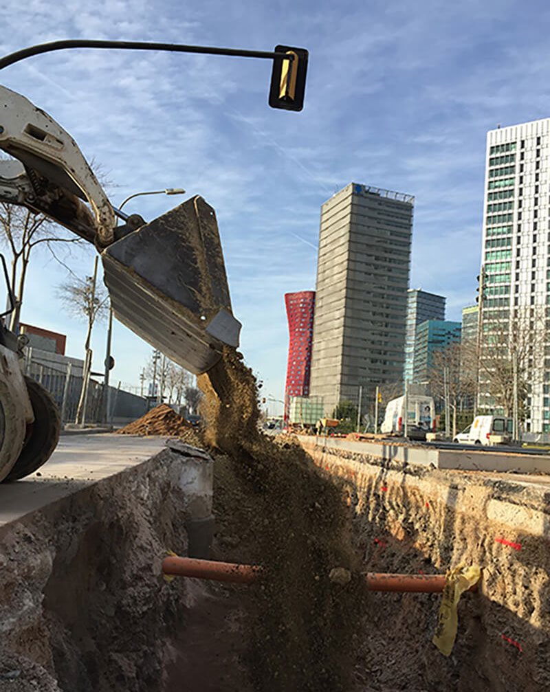 Obra civil de reparación de la calzada, por hundimiento de la misma, consistente en el saneamiento de tierras y formación de un nuevo pavimento de mezcla bituminosa, continua, caliente, en capa de rodadura.