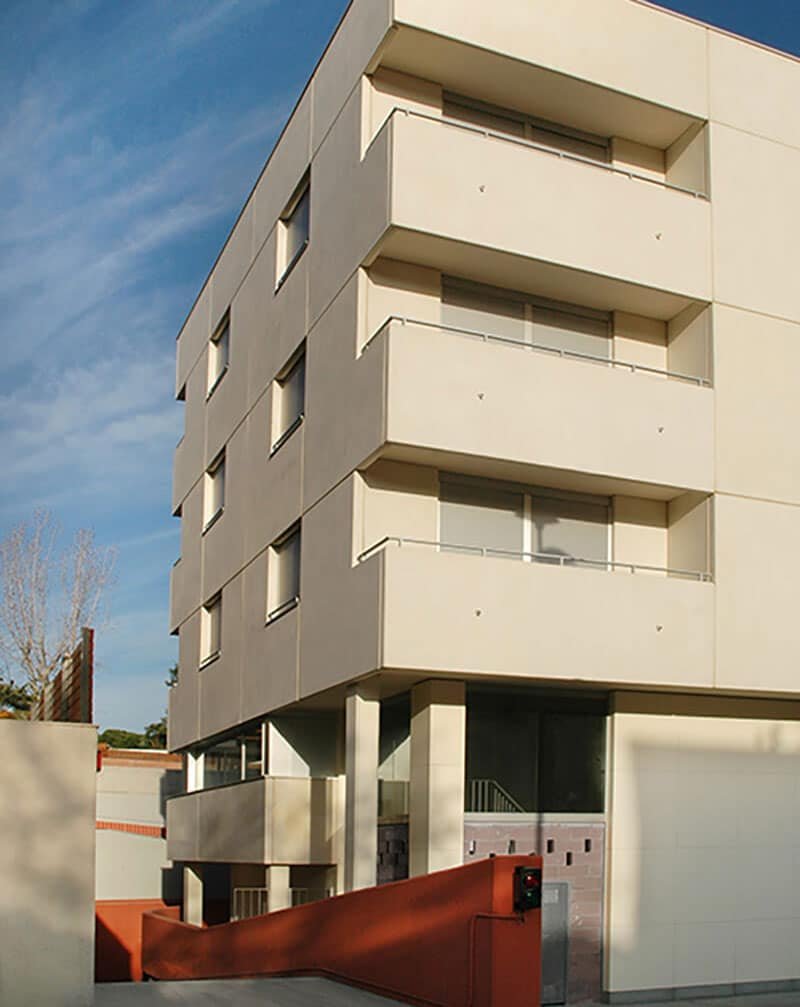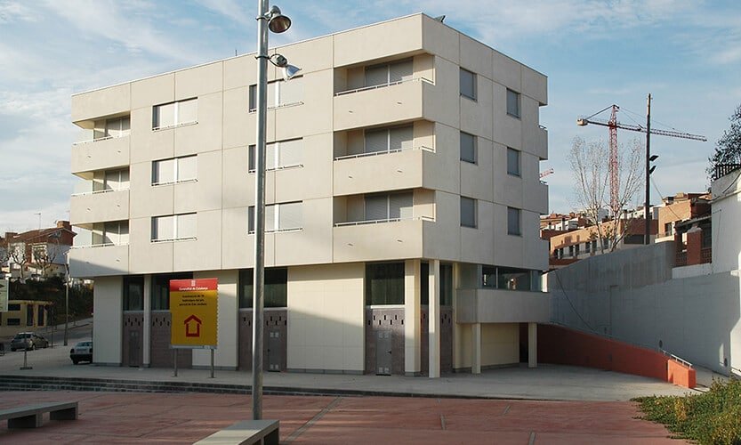 Edificio plurifamiliar de 18 viviendas y 5 locales comerciales. Proyecto promovido por el Incasol. Se ha apostado por un tipo de vivienda funcional dotada con acabados de larga durabilidad. Con una superficie total de 3.150 m². La obra se ha llevado a cabo en 16 meses. La arquitecta que ha proyectado la obra es Vicky Barber Willens.