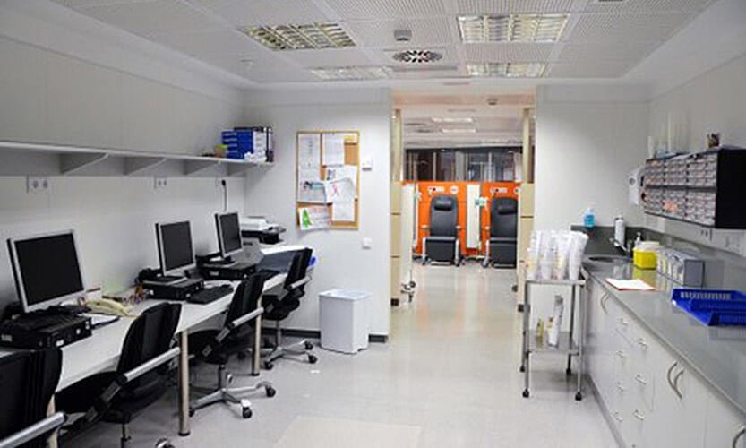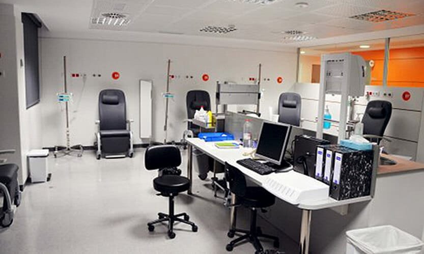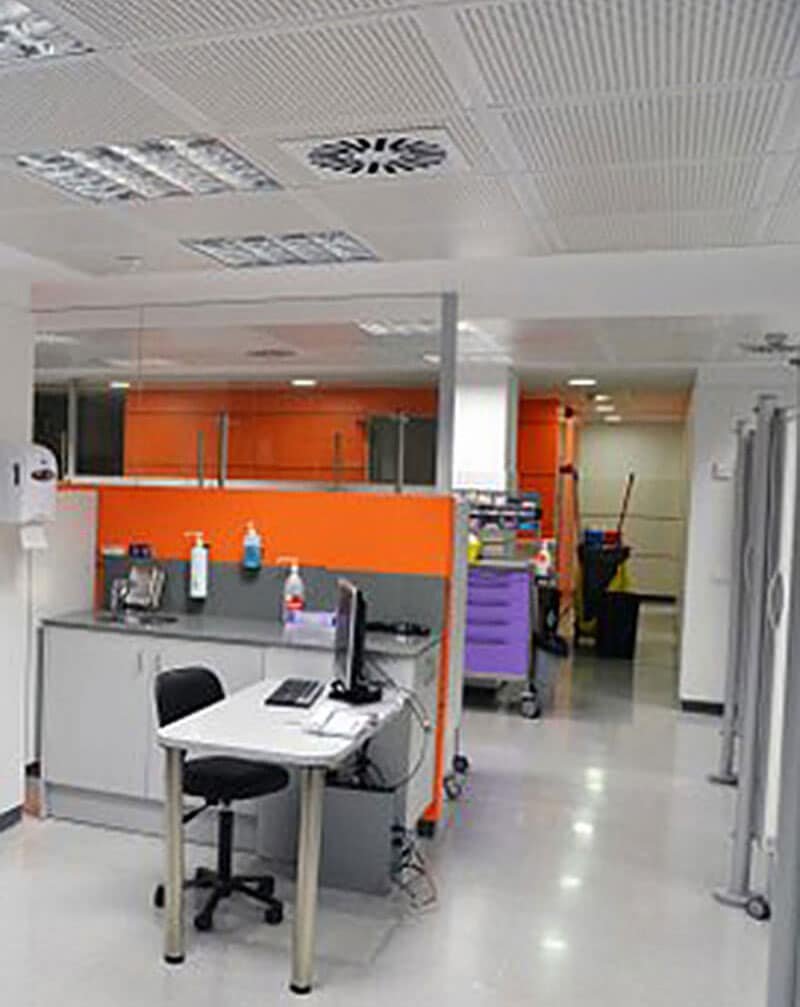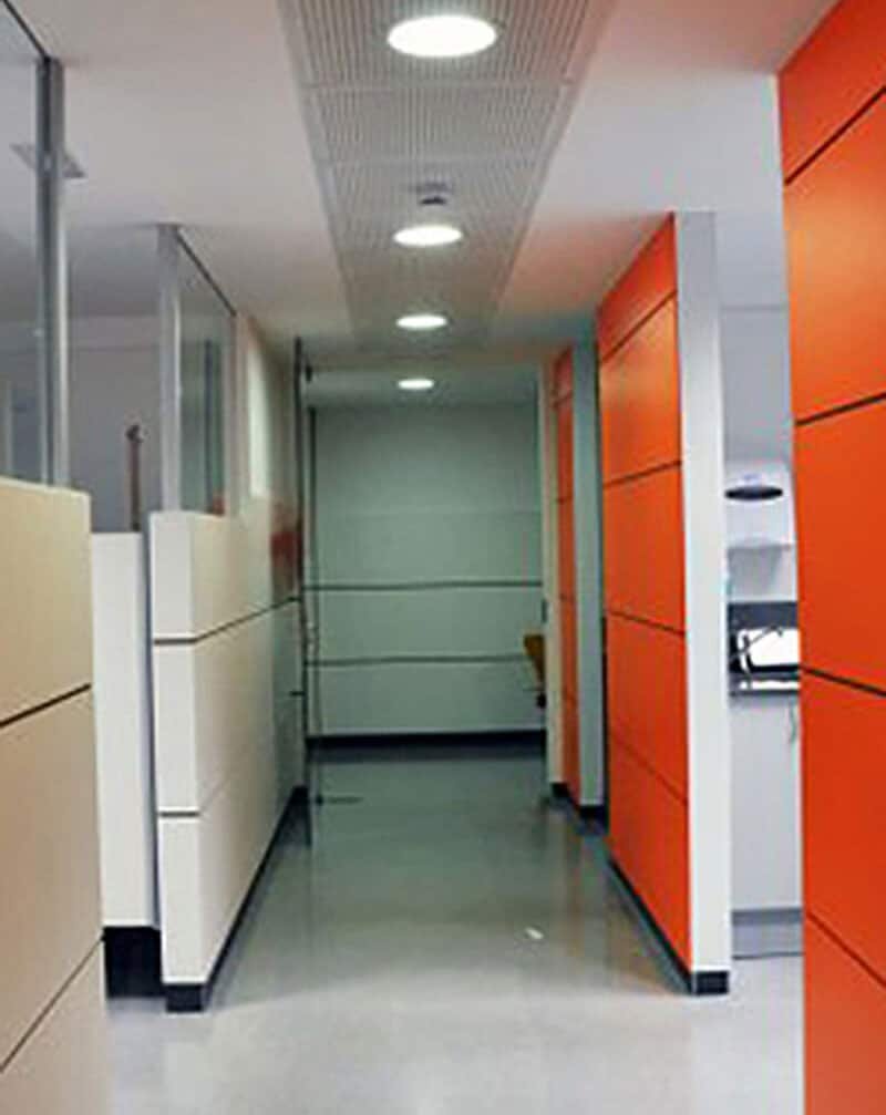 Remodelación del edificio de consultas externas de Mútua de Terrassa, consistente en la adecuación de la tercera planta de 250 m2, para ubicar el departamento de oncología y la remodelación de la planta -1 de 1.800 m2, donde se habilitará el área de consultas externas. Proyecto y dirección de obra desarrollados por el estudio de arquitectura Duran arquitectes.