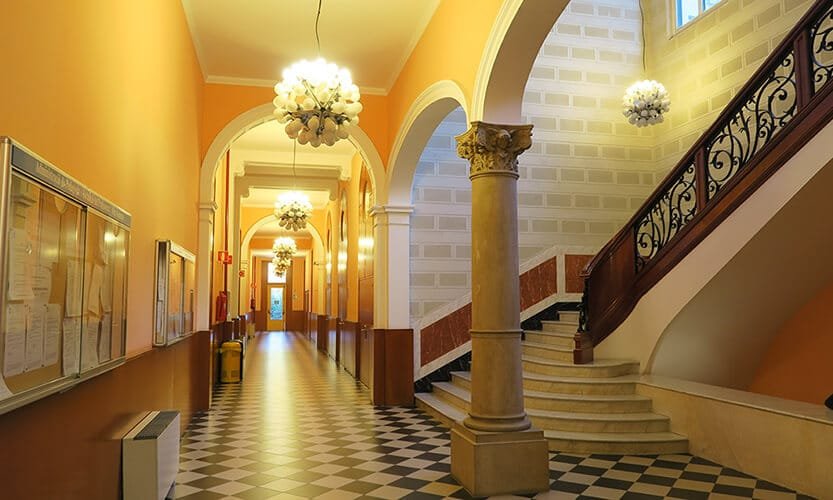 Trabajos de reforma y restauración, en la planta baja del Palacio de las Heures, en el Campus Mundet, para ubicar allí una Clínica Psicológica. Hemos derribado los tabiques y falsos techos existentes y hemos realizado una nueva distribución de la planta, creando nuevos despachos y salas de reuniones. También se ha renovado toda la carpintería interior.