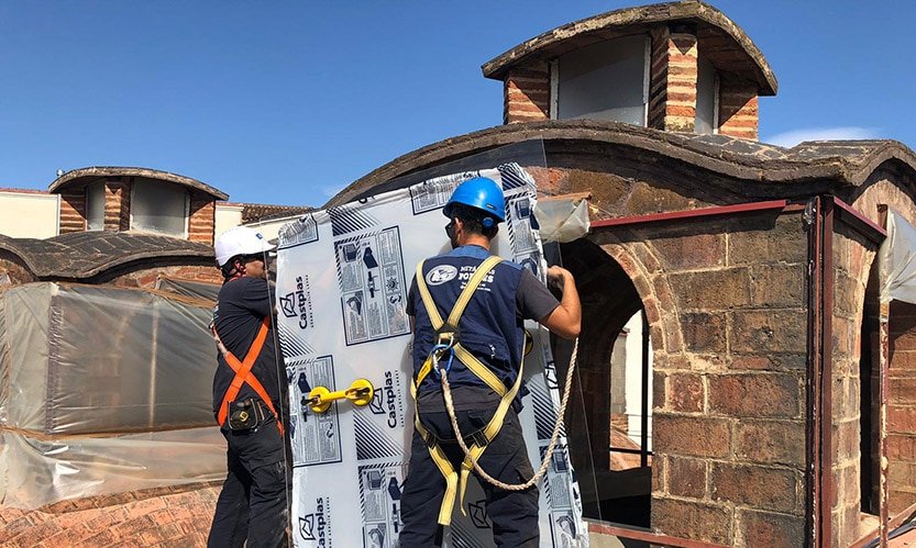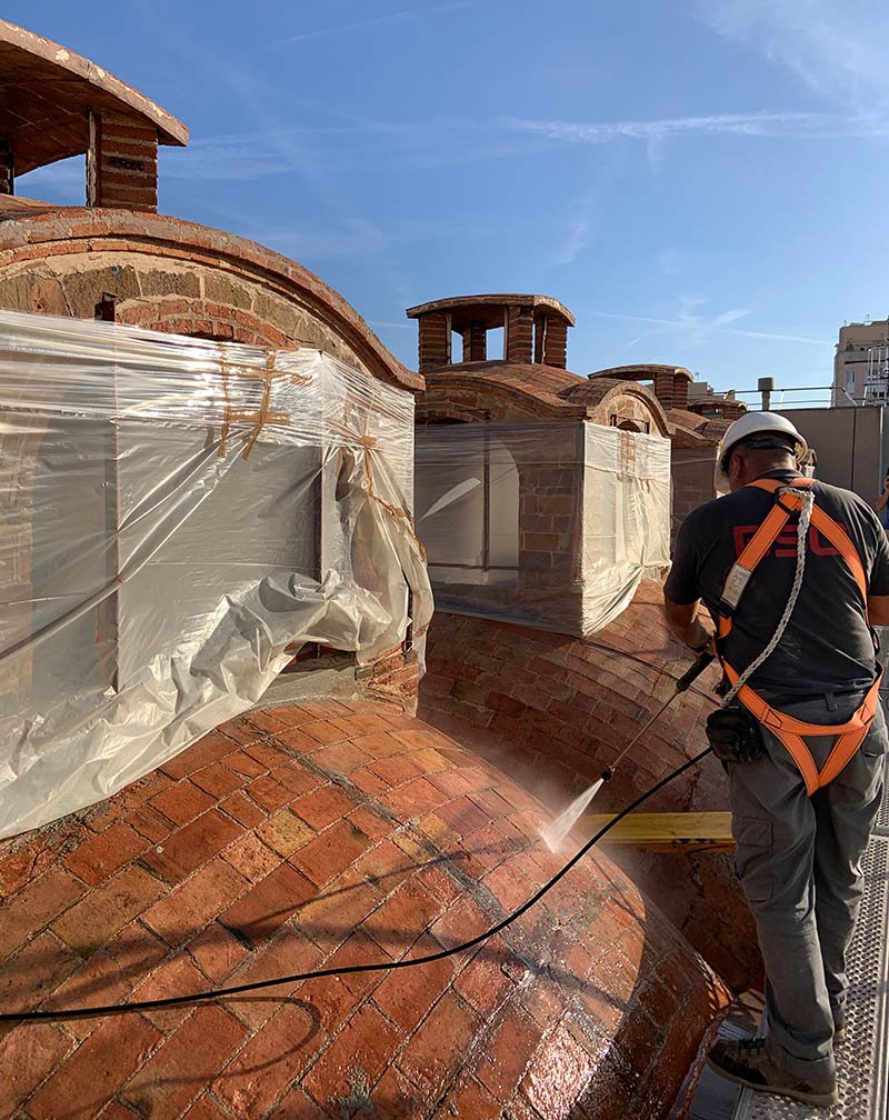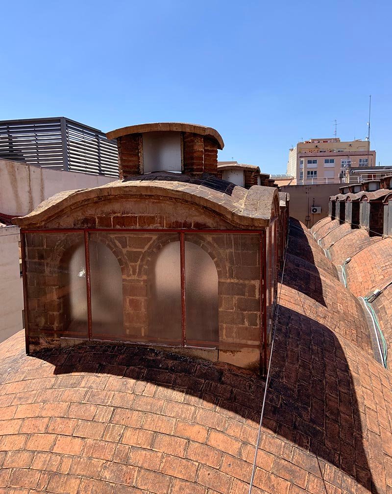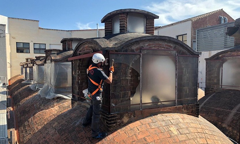 Obras de rehabilitación y conservación de las linternas del edificio de la Sala Muncunill de Terrassa. Actualmente alberga una sala de exposiciones, forma parte de los edificios patrimoniales de fábricas de la ciudad, y se encuentra recogido en el “Catálogo de Edificios de Interés Histórico-Artístico de 1981″. El Ayuntamiento de Terrassa promueve esta intervención.