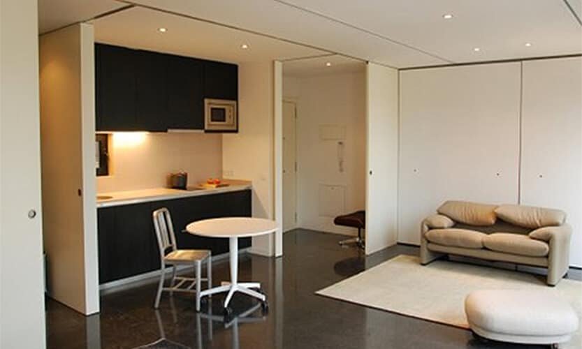 Edificio plurifamiliar de 12 viviendas, construidas para la Sociedad Municipal de Vivienda de Terrassa que las gestiona en régimen de alquiler. Disponen de unos tabiques móviles que permiten la división interior en tres espacios diferenciados: cocina, comedor y una habitación. Proyecto desarrollado por el arquitecto Santiago Vinuesa.