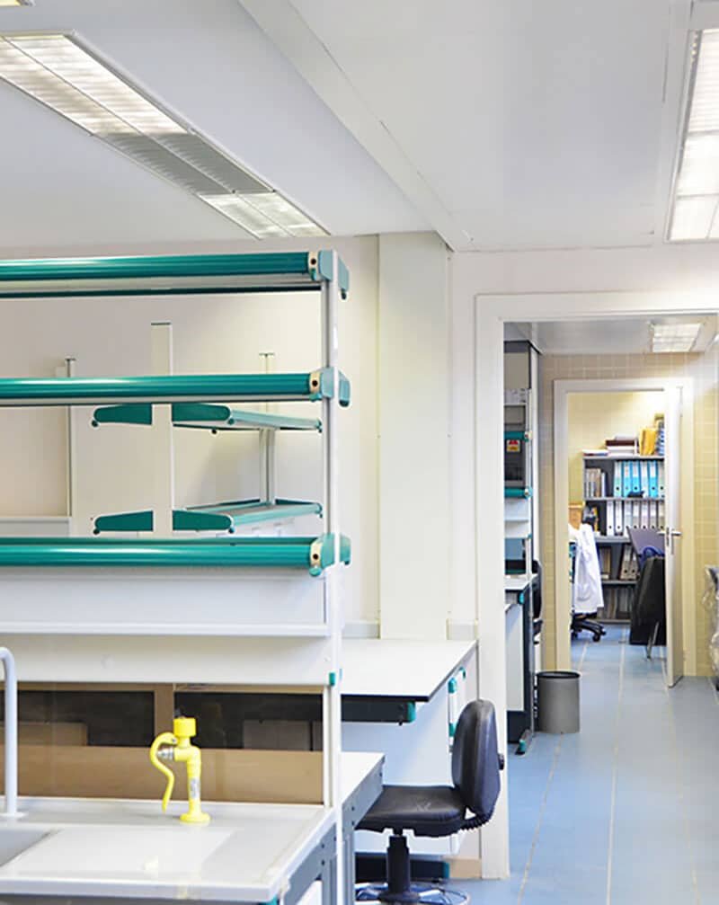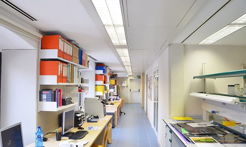 Trabajos correspondientes a la remodelación y rehabilitación de la tercera y quinta planta del edificio del Hospital Clínic, con una superficie de 500 m², para la Facultad de Medicina de la Universidad de Barcelona. Se han redistribuido los espacios existentes, con la formación de nuevas salas y laboratorios totalmente equipados con mobiliario técnico de investigación.